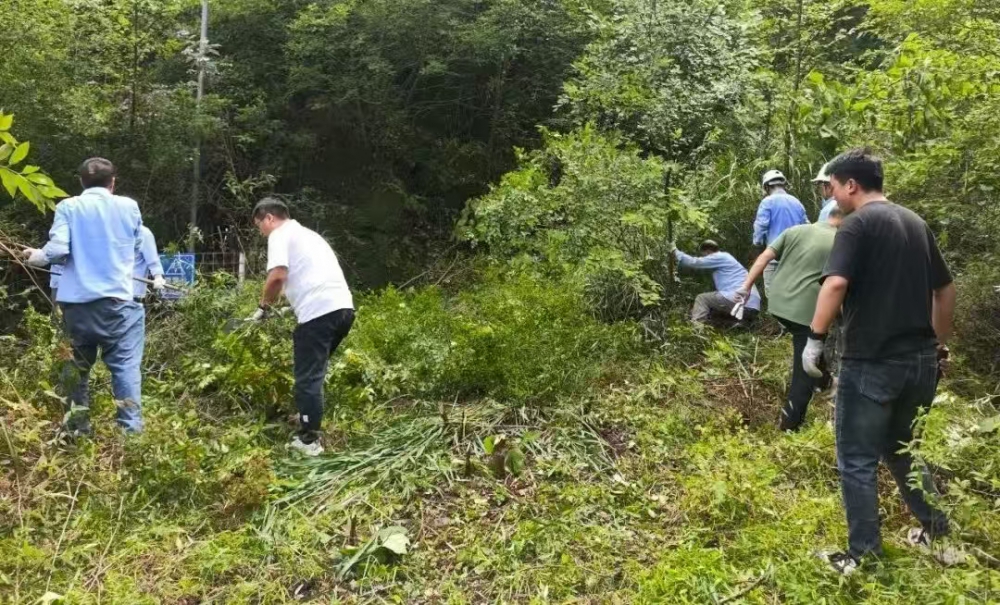 因長(zhǎng)期停用,炸藥庫(kù)周邊雜草叢生、灌木密布,部分區(qū)域雜草高達(dá)兩米,不僅影響安全巡查,還存在多種風(fēng)險(xiǎn)?,F(xiàn)場(chǎng),職工們手持割草機(jī)、鐮刀、鐵鍬等工具,分工協(xié)作:年輕職工主動(dòng)承擔(dān)割草、砍伐重任,老員工則負(fù)責(zé)理碎石、搬運(yùn)雜物,黨員先鋒們更是一馬當(dāng)先,帶頭攻堅(jiān)復(fù)雜區(qū)域。盡管汗水浸透工裝,雙手磨出水泡,但無(wú)人喊苦叫累,展現(xiàn)出強(qiáng)大的團(tuán)隊(duì)凝聚力。