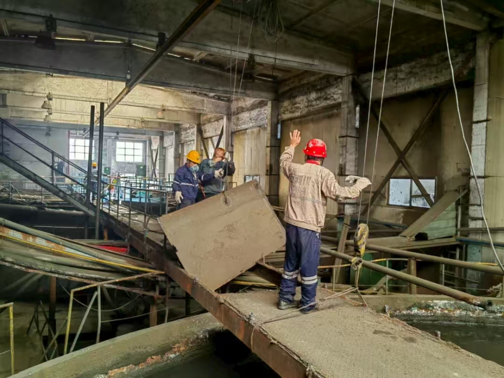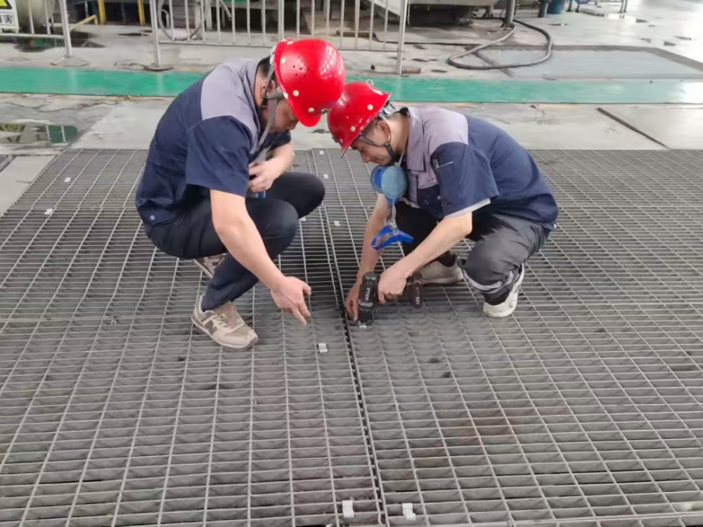 突出問題精準(zhǔn)治理。一選廠已生產(chǎn)運(yùn)行多年,濃密車間人行通道地板腐蝕嚴(yán)重,數(shù)次進(jìn)行修修補(bǔ)補(bǔ),存在較大安全隱患。為徹底解除隱患,公司利用停機(jī)間隙,籌集資金、人力、物資,對(duì)70米通道的地板、護(hù)欄、橫梁和支柱進(jìn)行全面拆除更換,有效保障了作業(yè)區(qū)域安全;同時(shí),為汲取內(nèi)蒙古“7.23”格柵板脫落事故的教訓(xùn),切實(shí)保障員工及參觀人員的生命安全,公司購買8000套固定卡扣,對(duì)兩個(gè)選廠磨浮車間格柵板進(jìn)行加固處理,并在參觀通道設(shè)立了安全提示牌。